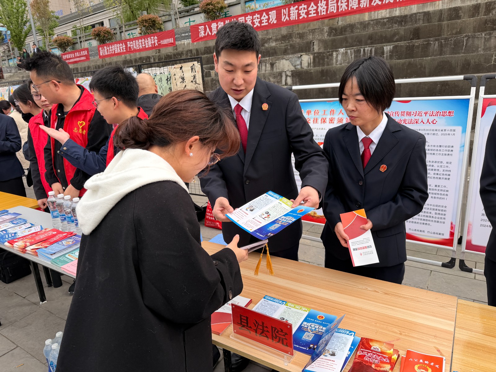 今日竹山網消息 4月15日,在第十一個全民國家安全教育日到來之際,竹山法院組織干警走進堵河廣場,以“面對面、零距離”方式開展主題普法宣傳。
