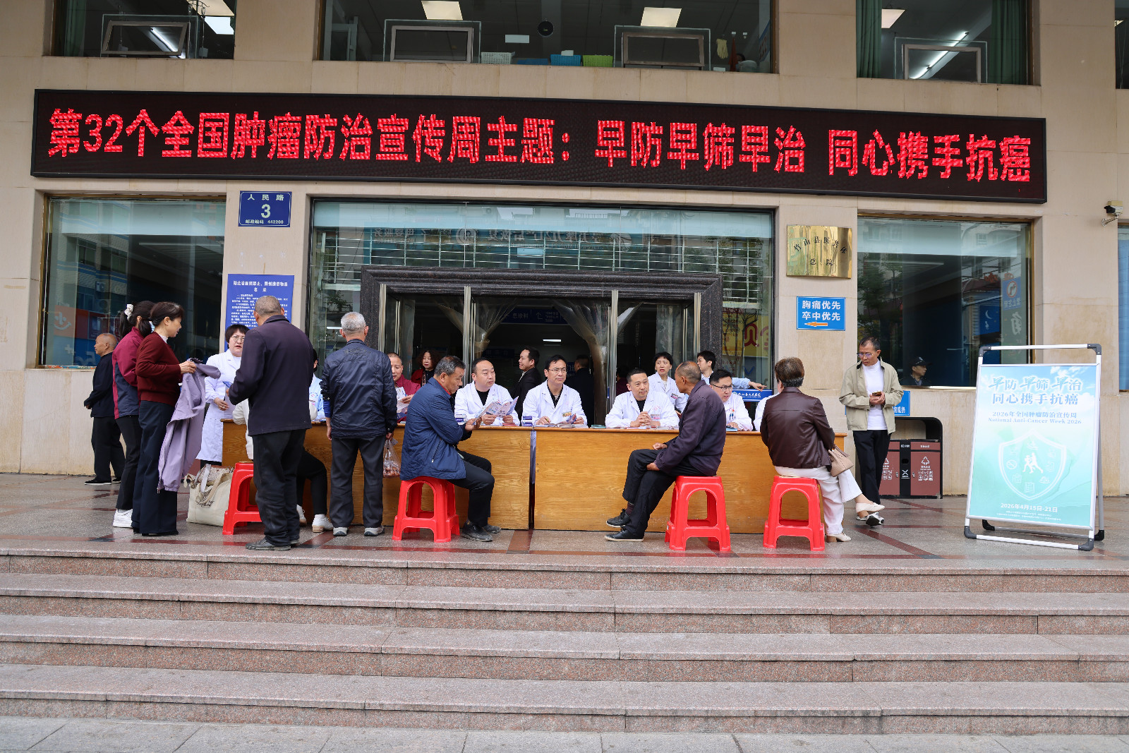 當天上午,縣人民醫院門口設立專業咨詢臺,醫療專家現場為群眾講解癌癥前沿手術、治療等診療方案,解答健康疑問,并免費提供血壓、血糖測量服務;疾控工作人員發放癌癥預防宣傳折頁,科普健康生活方式,講解致癌危險行為,引導群眾科學防癌。
